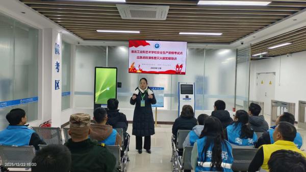 为进一步筑牢校园安全生产防线,提升考务人员应对突发事件的处置能力,淮北工业和艺术学校安全生产资格考试点于2025年12月22日下午,举行了全员应急消防实战演练。