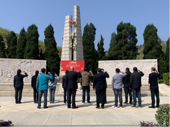 在革命烈士纪念碑前,伴随着雄壮的中华人民共和国国歌,全体党员庄严肃立,向英烈敬献花、默哀致敬,并重温入党誓词。